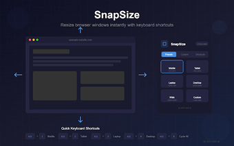 SnapSize est une extension gratuite pour Chrome qui permet de redimensionner instantanément les fenêtres du navigateur à des dimensions prédéfinies grâce à des raccourcis clavier personnalisables. Conçue principalement pour les développeurs web et les designers, elle facilite les tests de mises en page réactives sur divers appareils. Avec SnapSize, vous disposez de sept tailles prédéfinies correspondant à des formats mobiles, tablettes, ordinateurs portables et de bureau, ainsi que deux emplacements personnalisés pour vos propres dimensions.